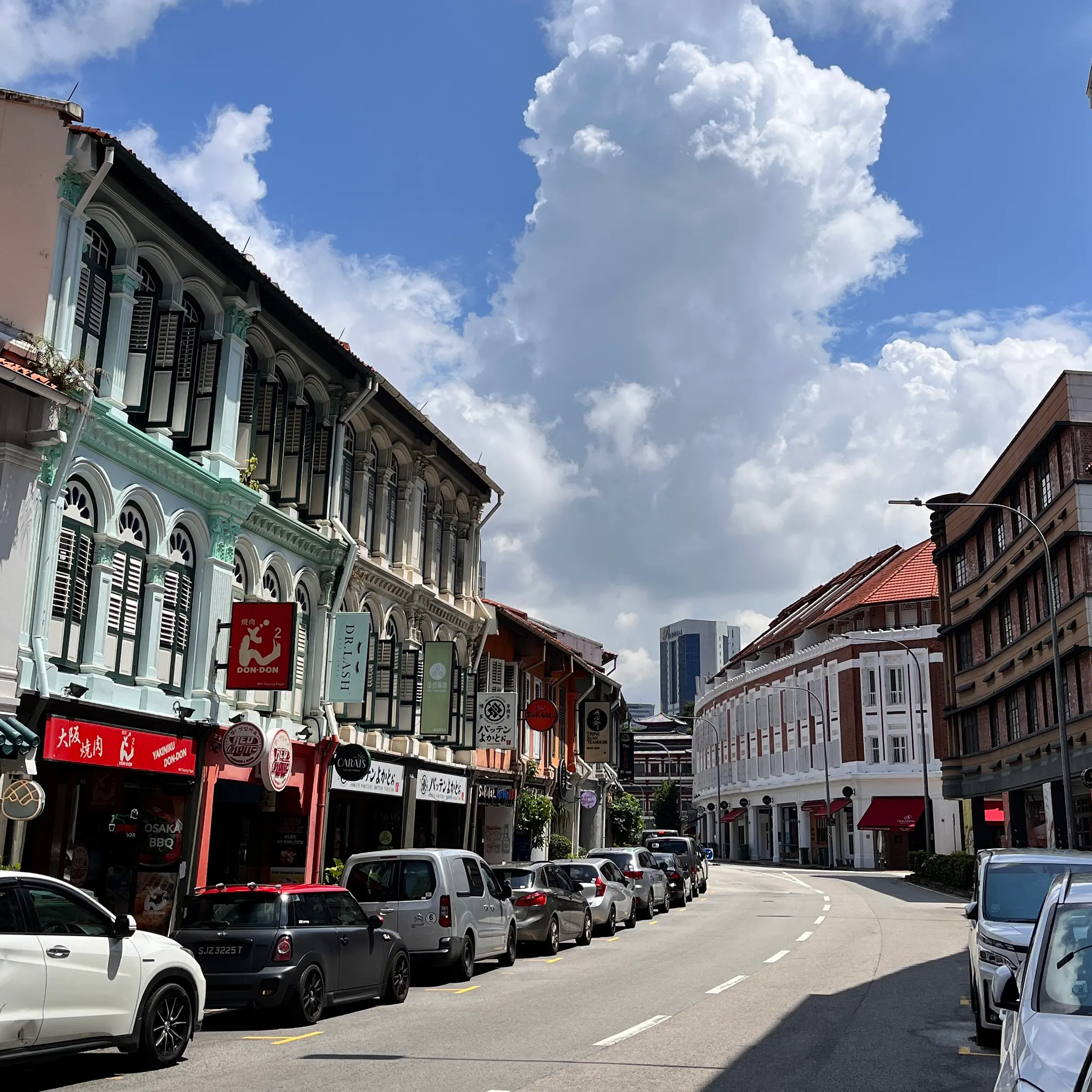 차이나타운 스트리트 구경 차이나타운 건물들 사이 저 멀리로 보이는 고층 건물들이 이색적인 느낌을 준다. 여기에도 한류가 유행인지 K pop도 많이 들리고 한국 아이돌 사진도 많이 보였다ㅎㅎㅎ