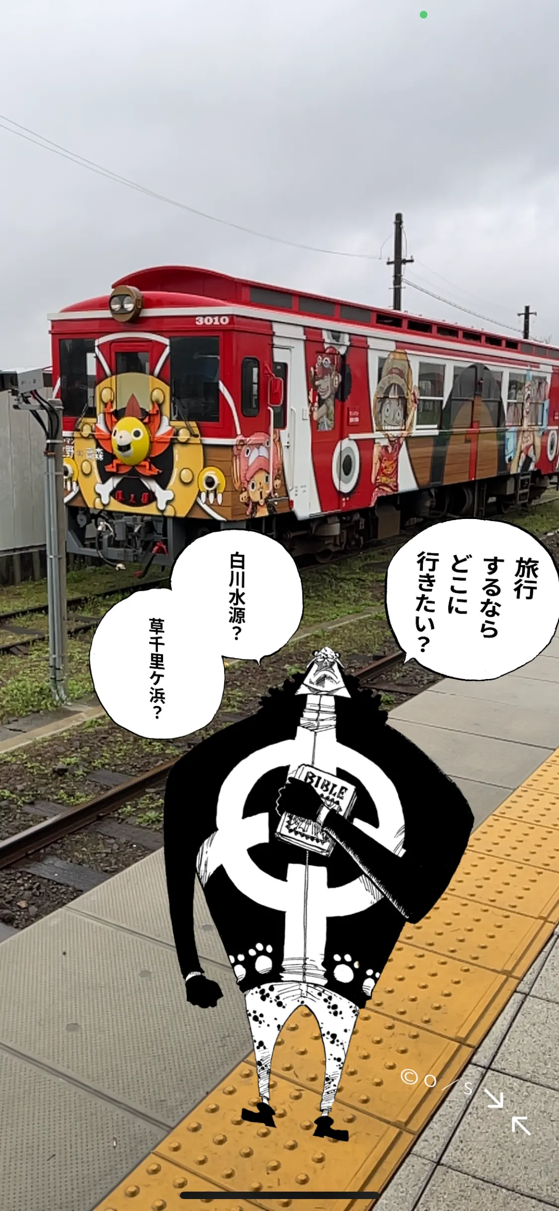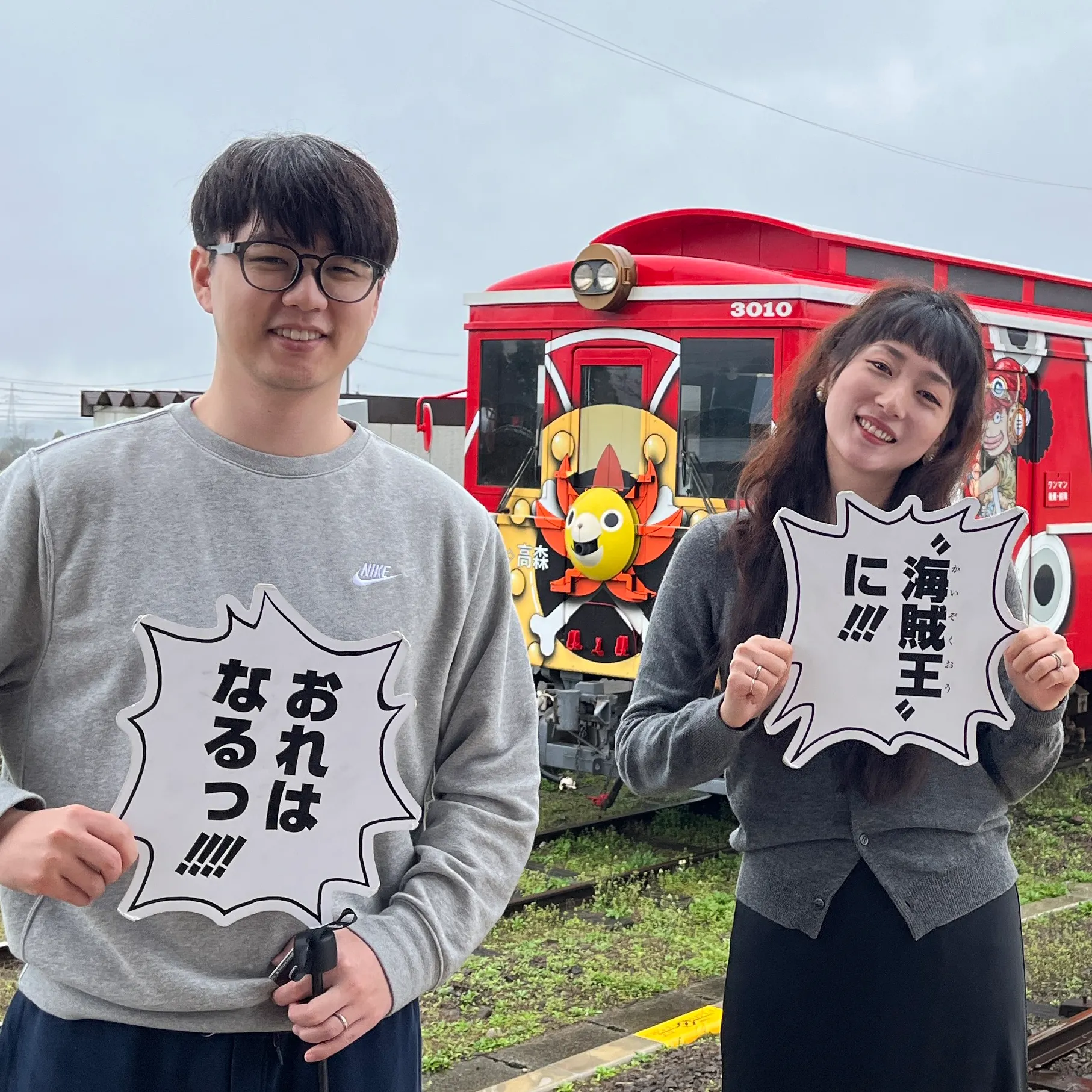 그리고 우리가 향한 곳은 엊그제에 이어 원피스 동상 투어를 마저 하러 간 곳! 프랑키 동상이 있는 미나미아소철도 다카모리역! 구마모토 지진으로 선로가 끊겼던 이 곳에 프랑키는 제격이지~! 부러워하는 쵸파가 더 귀엽다🥹