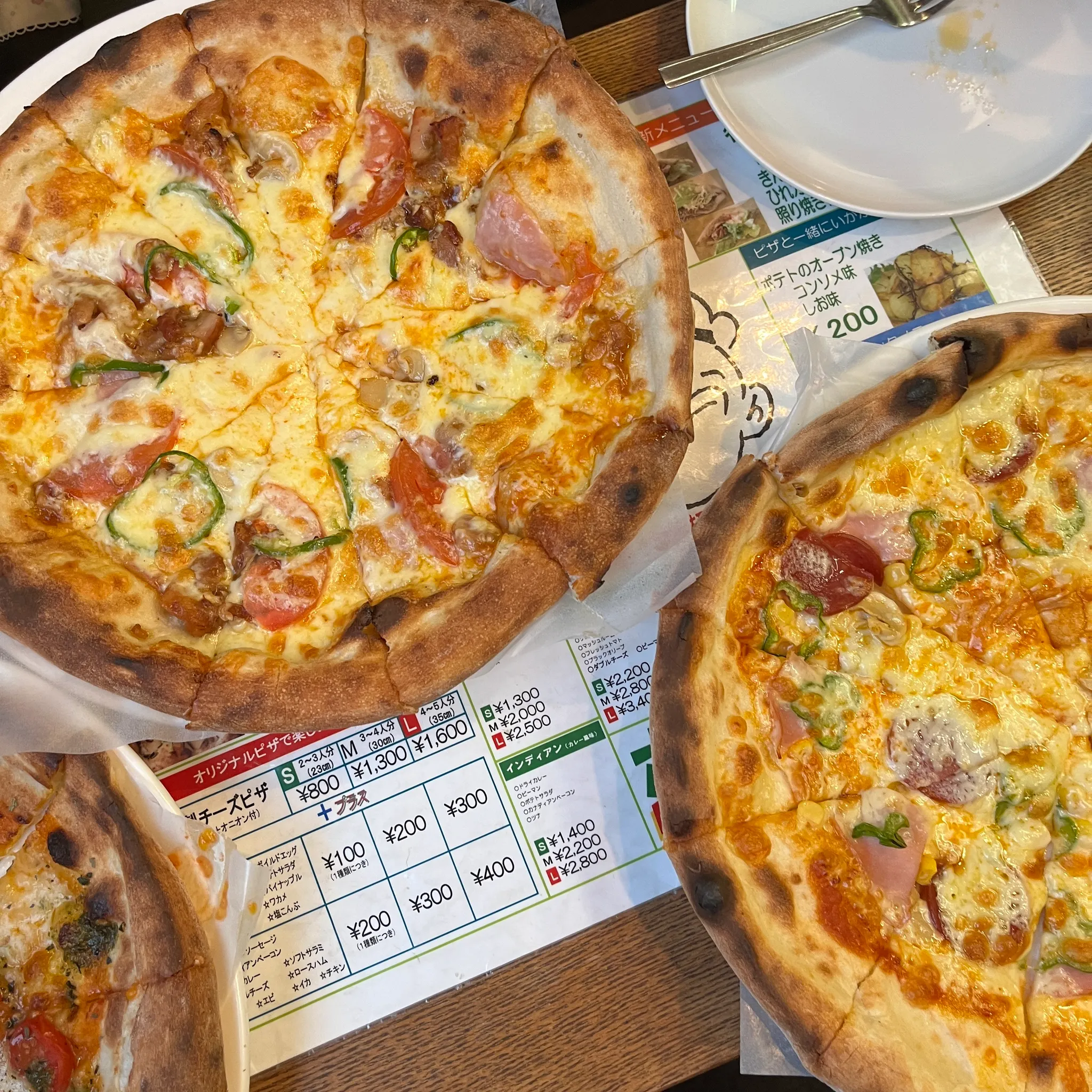 어느새 나온 피자. 화덕피자라 바닥은 바삭바삭하고 도우가 쫄깃쫀득해서 맛있었다. 세 판 시켰는데 부족하려나 싶은 걱정과는 달리 배부르게 먹었다
