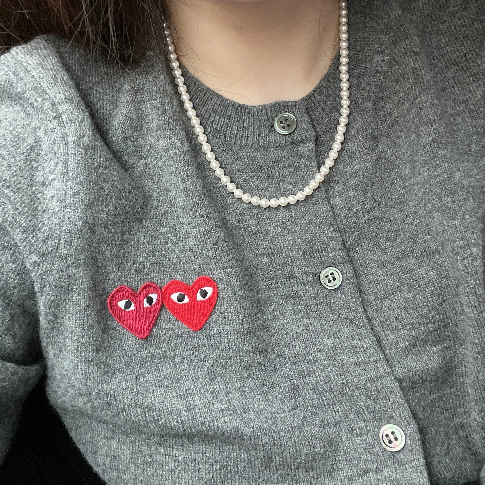 흐린 날 기분이라도 좀 내보려고 찬 진주 목걸이ㅎㅎㅎ 그리고 작년 오사카 꼼데가르송 오픈런 성공한 가디건