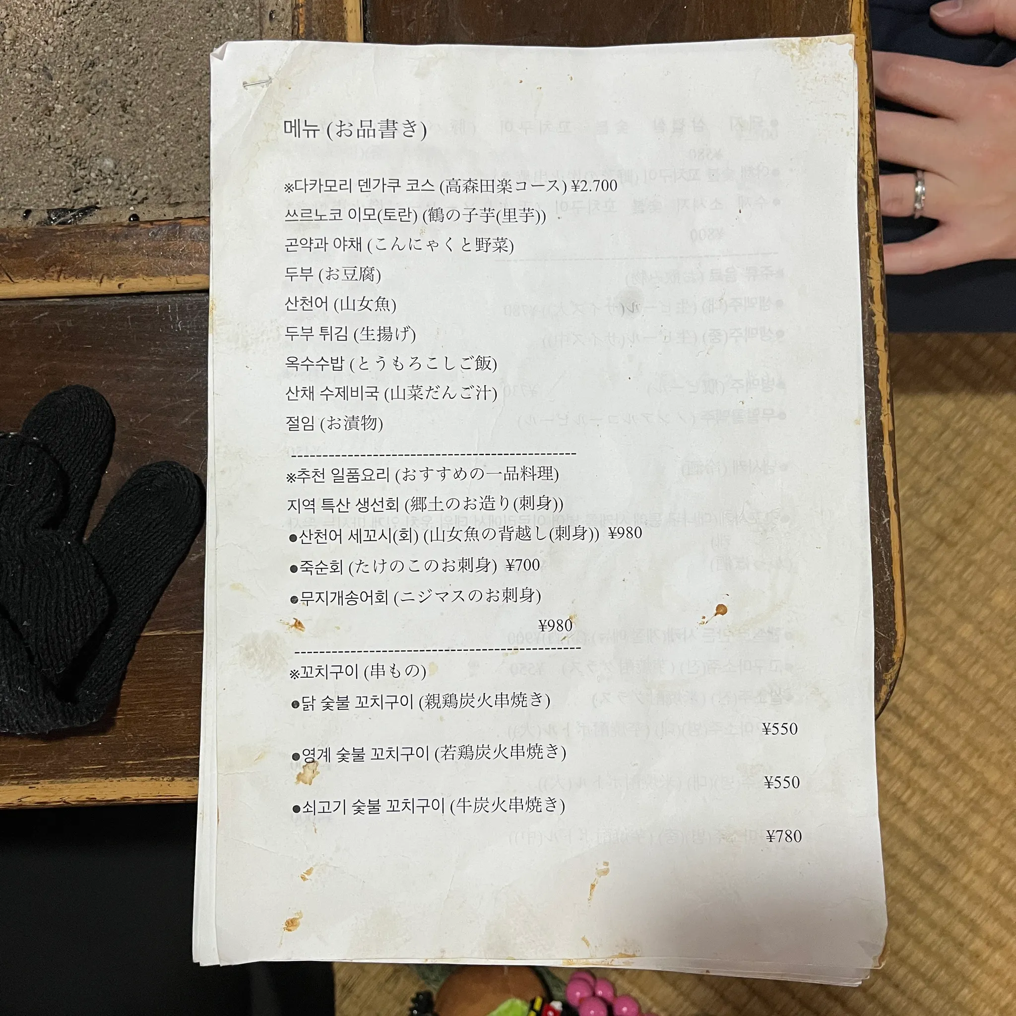덴가쿠 코스 요리를 먹을까 하다가 그냥 각자 원하는 꼬치 시켜서 먹기로 결정한 우리들 ((근데 지금 생각해보니 코스 요리로 하고 먹고 싶은 꼬치 추가 주문했을 걸 싶다ㅎ