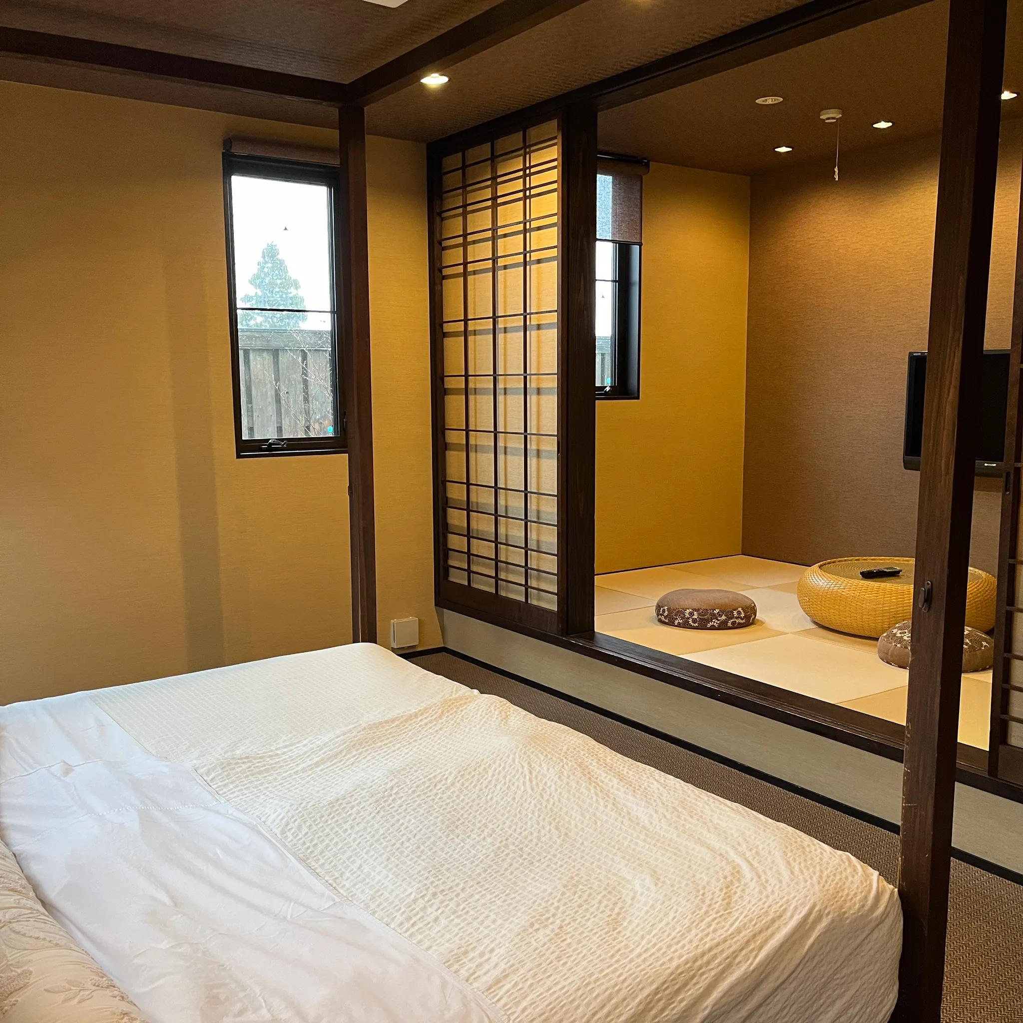 그리고 침대 앞에는 조그마하게 다다미 방이 있었다. 옆쪽 수납장에 토퍼와 베개도 넉넉하게 들어있어 6~8명까지 같이 잘 수 있을 것도 같았다