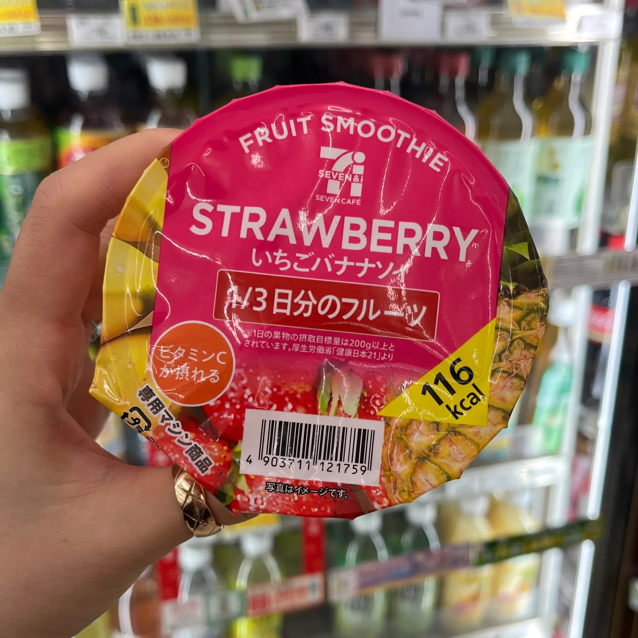 카운터 옆 기계에 바코드를 찍고 넣으면 된다. 그러면 믹서기가 알아서 윙 갈아줌!!! 내가 먹은건 딸기바나나였는데 그대로 얼린 냉동 과일이라 그런가 꽤괜이었다. 한국 편의점에 있으면 종종 먹을 정도!