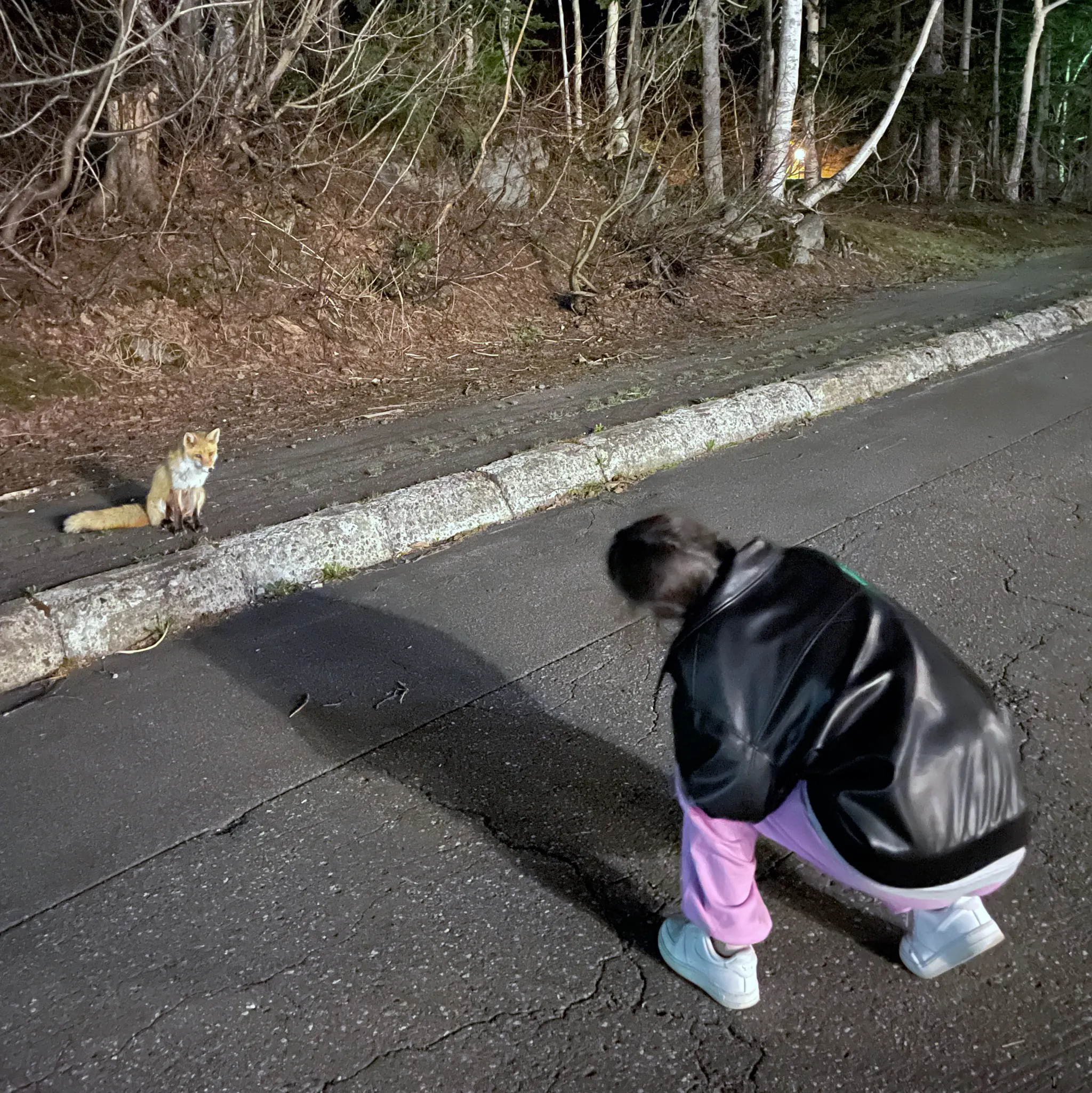 야식 사러 편의점에 가기로 결정! 여기는 정말 외진 곳이라 가장 가까운 편의점도 차 타고 조금 가야한다. 차 타러 가려는데! 여우 발견!!!