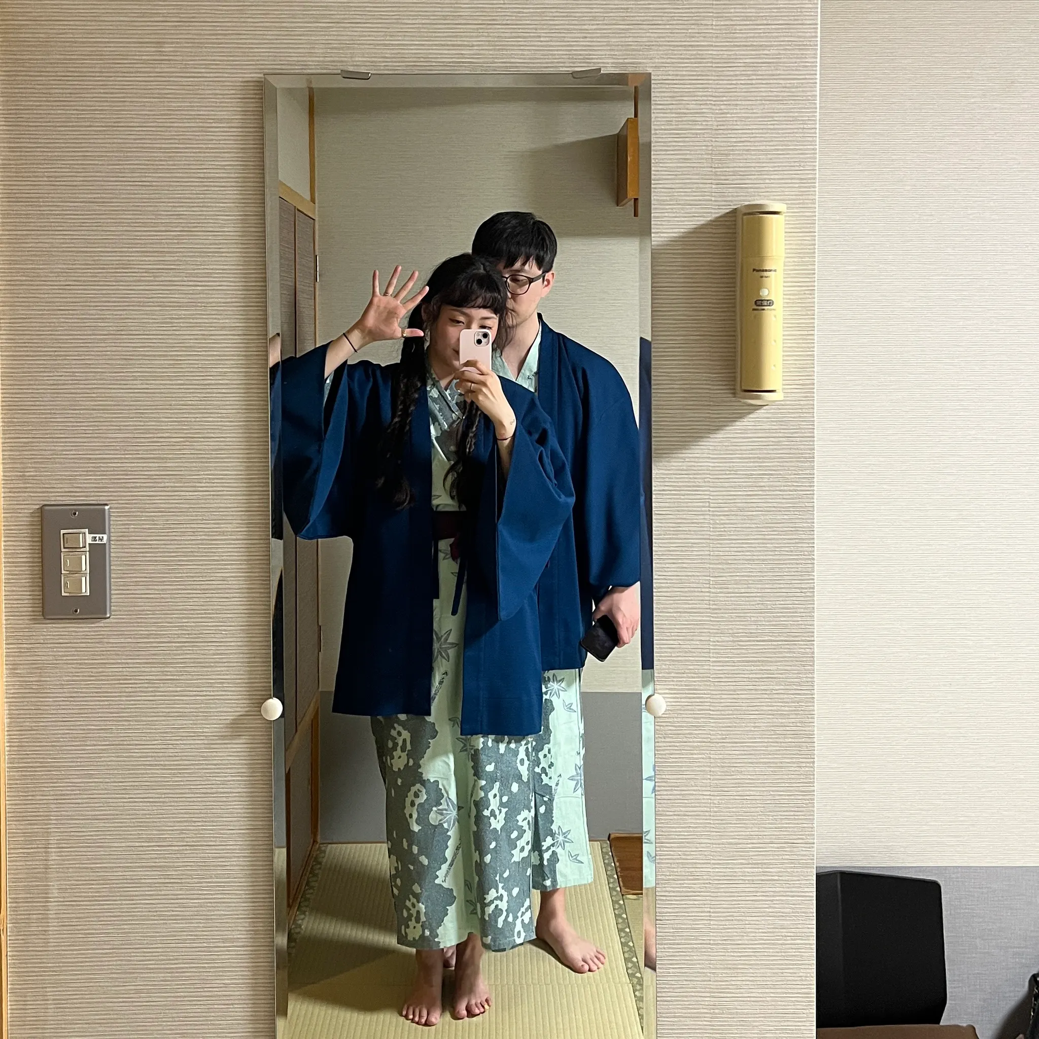 각자 방에서 조금 쉬다가 유카타로 갈아입고(이번에는 부부끼리 방을 따로 쓴다) 만나기로 했다
