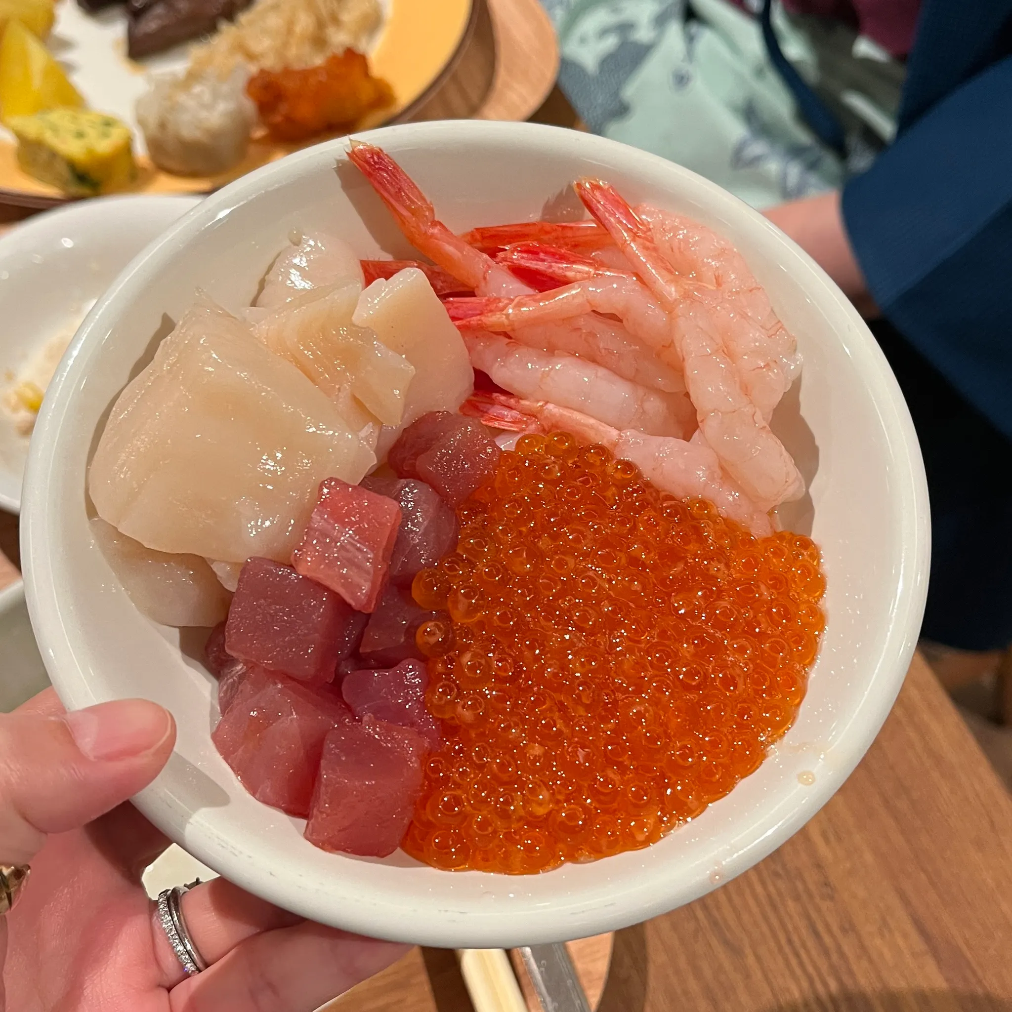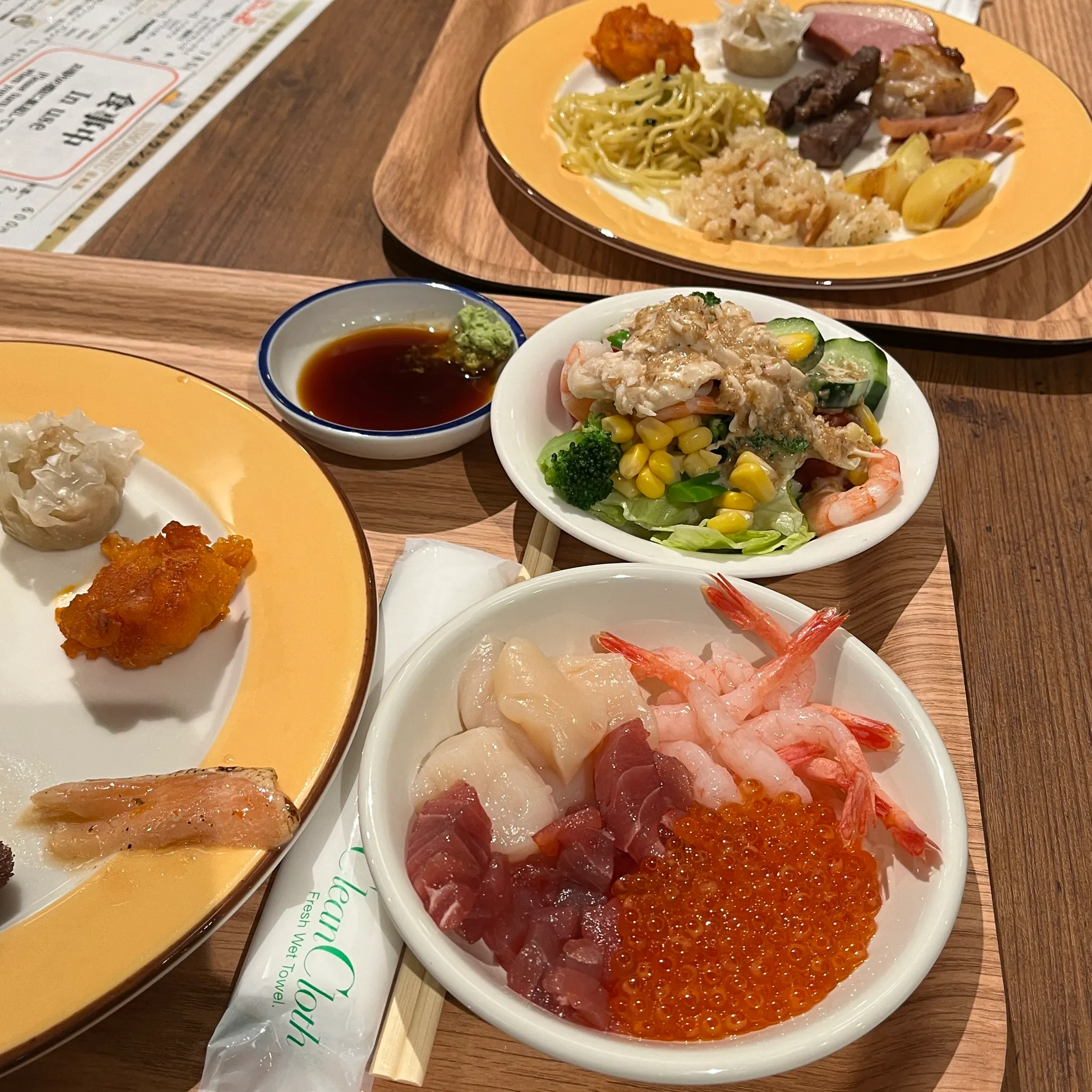 그리고 대망의 호텔 저녁! 다른 것도 다 괜찮기도 맛있기도 했지만! 가리비관자+단새우+연어알+참치가 무제한이라니!!!! 심지어 맛도 좋았다.